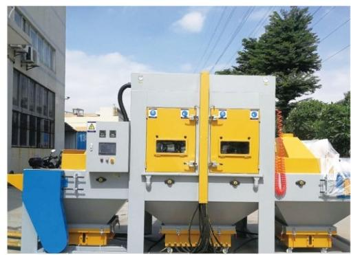 組 成 結 構 :主機外殼、輸送裝置、噴頭搖擺裝置、機械式提升自動回砂裝置、除塵裝置、控制系統(tǒng)。